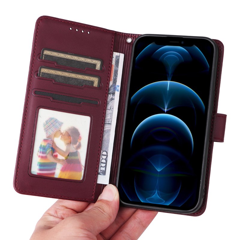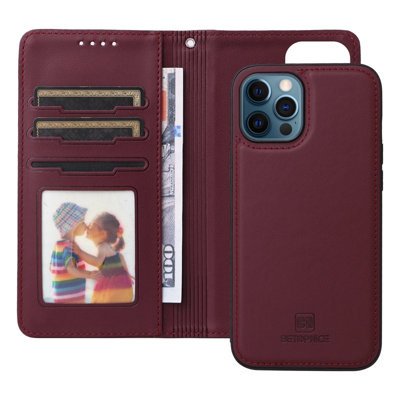 BETOPNICE iPhone 12 Pro Max Fodral - Äkta läder - Vinröd