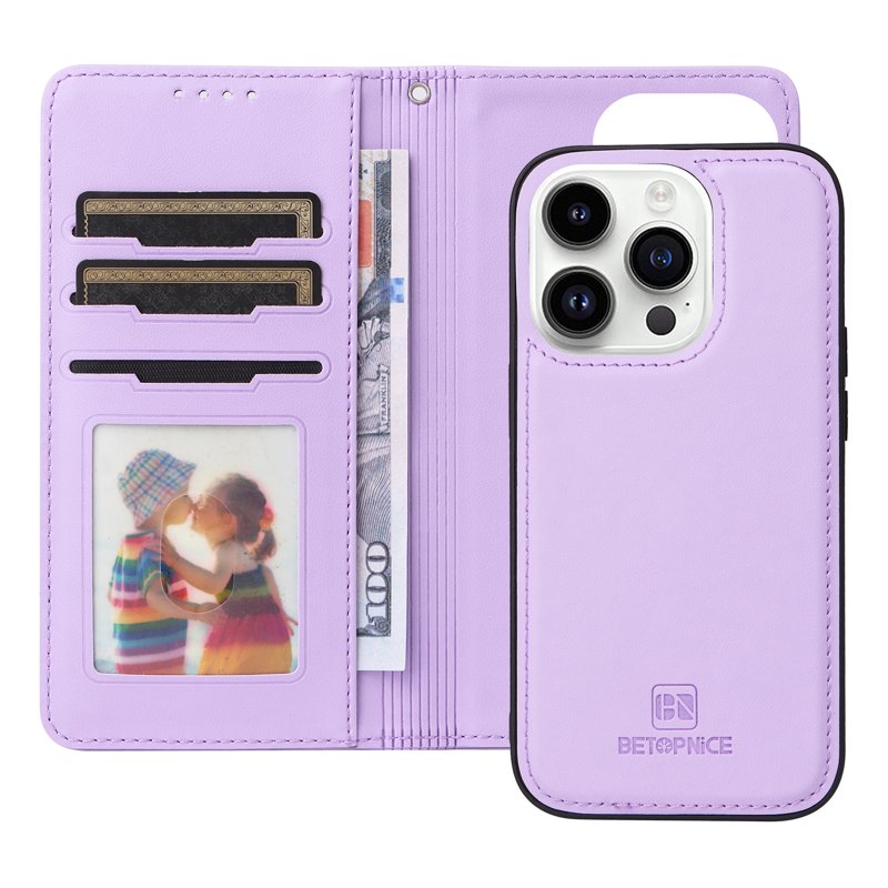 BETOPNICE iPhone 14 Pro Max Fodral - Avtagbart PU-läder - Lila
