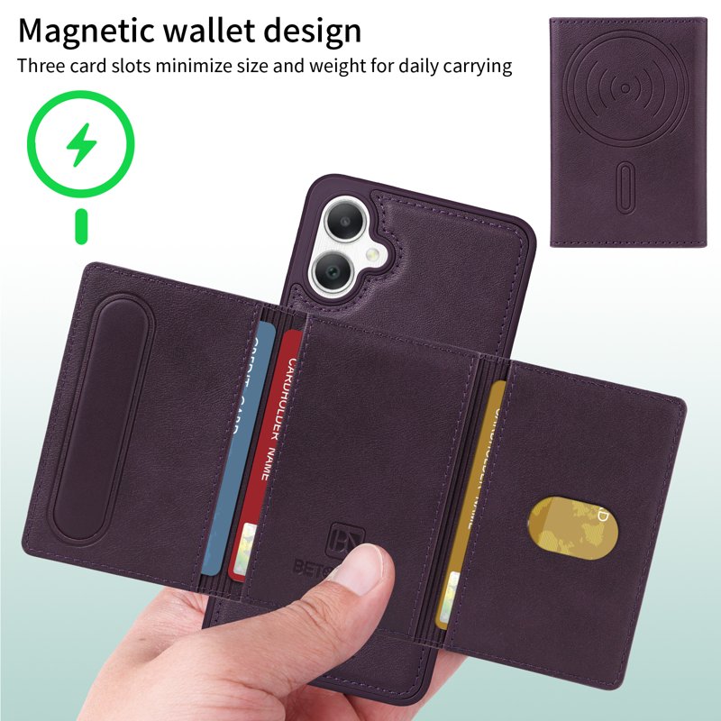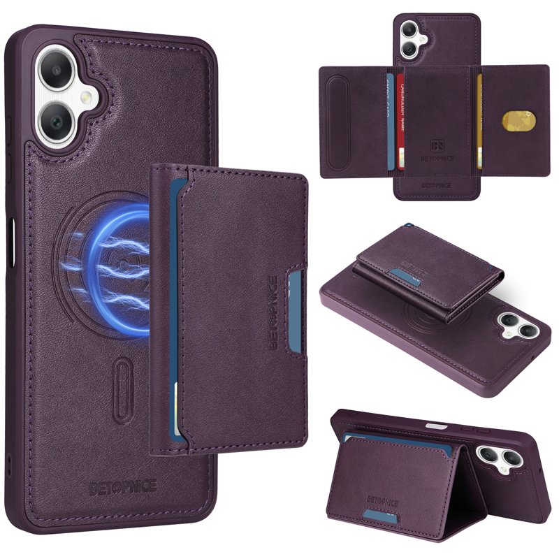 BETOPNICE Samsung Galaxy A06 4G Fodral i äkta läder är den perfekta lösningen för att skydda din telefon. Med en elegant lila design kombinerar detta fodral stil och funktionalitet. Det erbjuder avancerad RFID-skydd och är kompatibelt med MagSafe. Njut av säkerhet och bekvämlighet i ett och samma fodral.