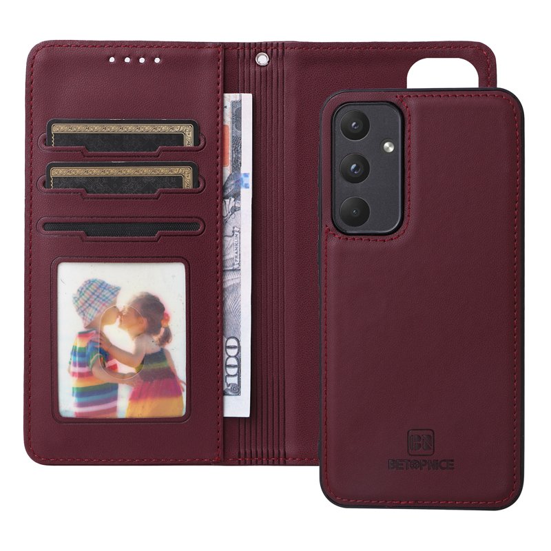 BETOPNICE Samsung Galaxy A55 5G Fodral - Äkta läder - Vinröd