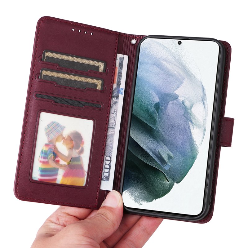 BETOPNICE Samsung Galaxy S21+ Fodral - Äkta läder - Vinröd