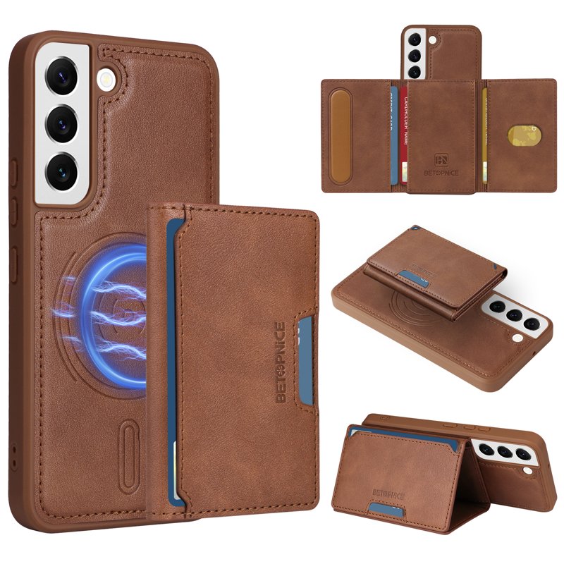Upplev stil och funktionalitet med BETOPNICE Samsung Galaxy S22 5G fodral i äkta läder. Detta fodral erbjuder både skydd och elegans. Med sin MagSafe-kompatibilitet och avancerade RFID-skydd håller det dina kort säkra. Det är tillverkat av högkvalitativa material och har en praktisk design som passar din livsstil.