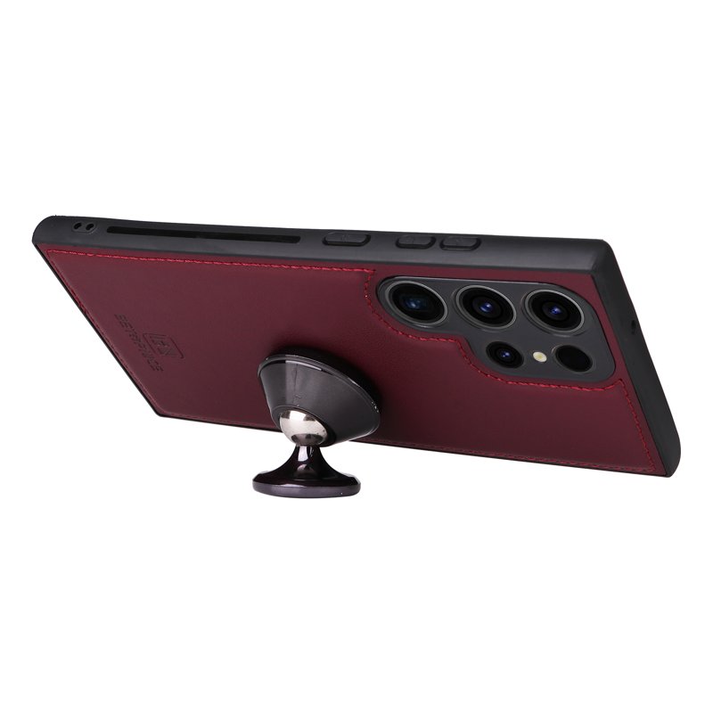 BETOPNICE Samsung Galaxy S23 Ultra Fodral - Äkta läder - Vinröd