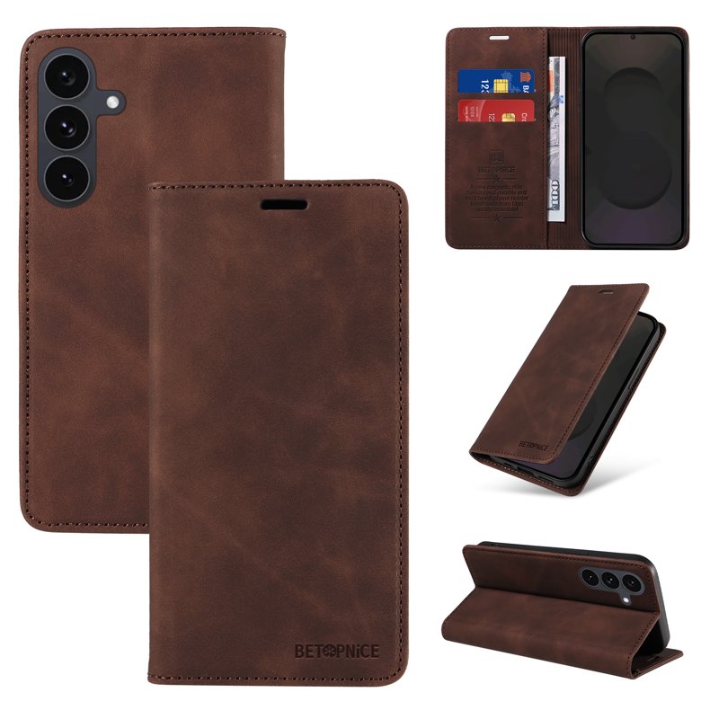 BETOPNICE Samsung Galaxy S25 FE Fodral i äkta läder är det perfekta valet för att skydda din telefon. Med en stilren design och funktionella egenskaper erbjuder detta fodral både säkerhet och bekvämlighet. Det är tillverkat av högkvalitativt PU-läder och TPU, vilket gör det både hållbart och elegant.