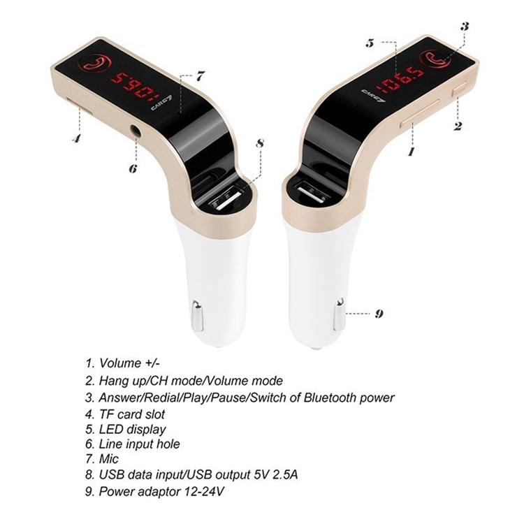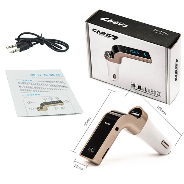 Smart Car Bluetooth-kompatibel MP3-Spelare FM-Sändare USB-Billaddare Handsfree-Bilsats G7 - Guld