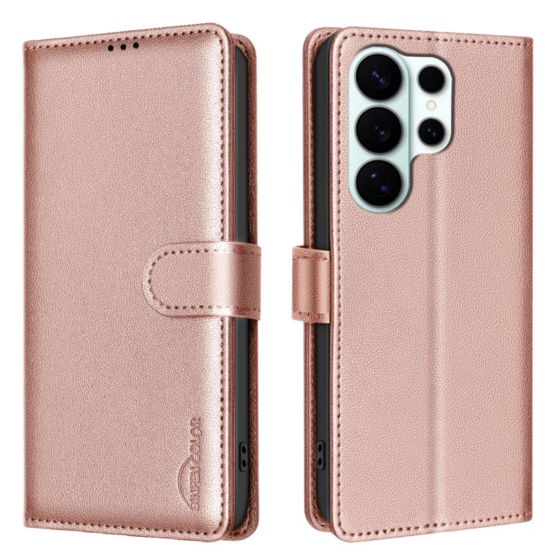 Skydda din Samsung Galaxy S26 Ultra med BINFEN COLOR BF32 läderfodral. Detta eleganta och funktionella fodral i roséguld kombinerar stil med säkerhet. Med RFID-blockering och smarta förvaringslösningar är det det perfekta valet för den moderna användaren.