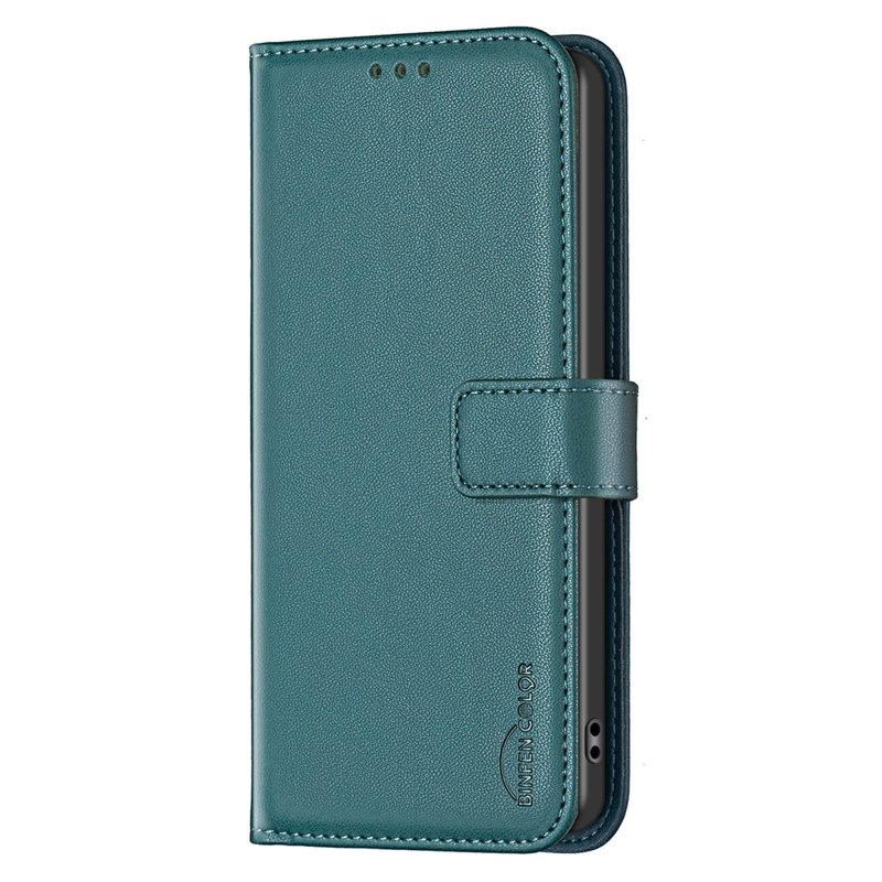 Skydda din Samsung Galaxy S26+ med BINFEN COLOR BF17 Wallet Folio Flip Leather Cover i grön. Denna stiliga och funktionella mobilskal kombinerar högkvalitativa material med smart design. Med flera praktiska funktioner är detta fodral perfekt för både arbete och nöje.