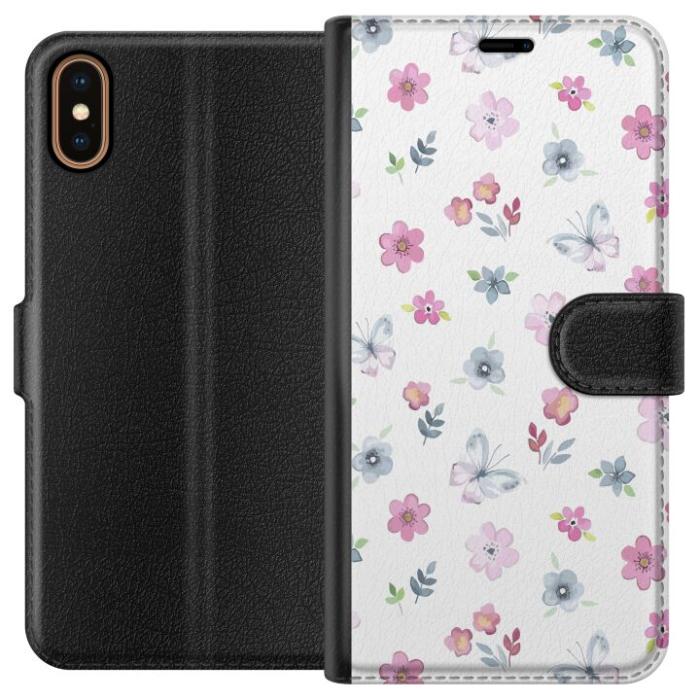 Plånboksfodral till Apple iPhone XS med Blommor och fjärillar