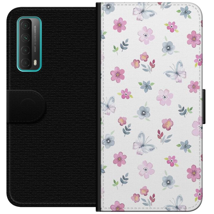 Plånboksfodral för P smart 2021 med Blommor och fjärillar -design. Fodralet kombinerar stil och funktion – ett slitstarkt mobilskal som skyddar mot repor och stötar samt praktiska kortfack på insidan.