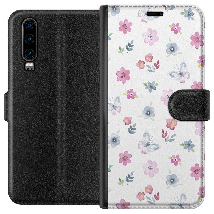 Plånboksfodral till Huawei P30 med Blommor och fjärillar