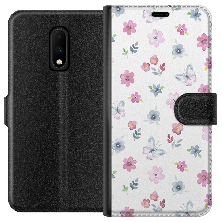 Plånboksfodral för 7 med Blommor och fjärillar -design. Fodralet kombinerar stil och funktion – ett slitstarkt mobilskal som skyddar mot repor och stötar samt praktiska kortfack på insidan.