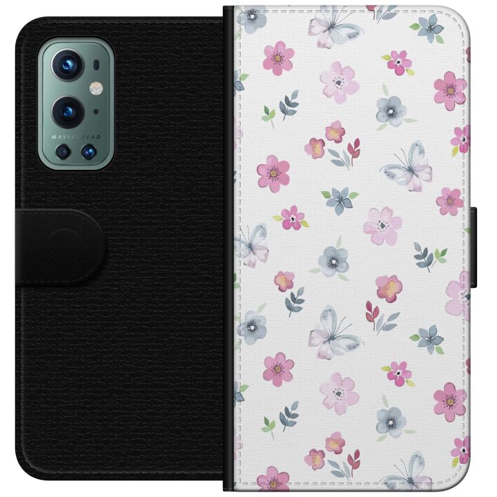 Plånboksfodral för 9 Pro med Blommor och fjärillar -design. Fodralet kombinerar stil och funktion – ett slitstarkt mobilskal som skyddar mot repor och stötar samt praktiska kortfack på insidan.