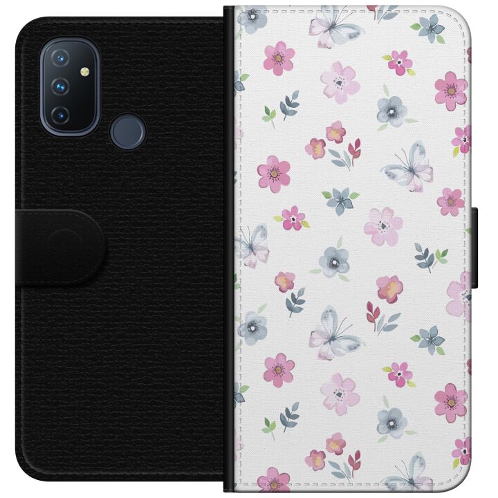 Plånboksfodral för Nord N100 med Blommor och fjärillar -design. Fodralet kombinerar stil och funktion – ett slitstarkt mobilskal som skyddar mot repor och stötar samt praktiska kortfack på insidan.