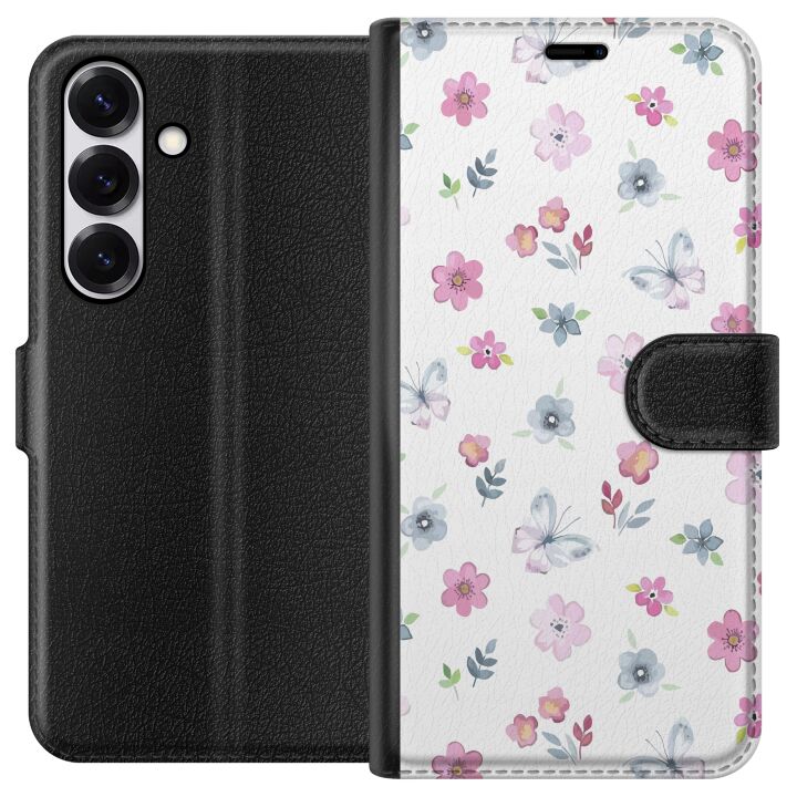 Plånboksfodral till Samsung Galaxy S25 med Blommor och fjärillar