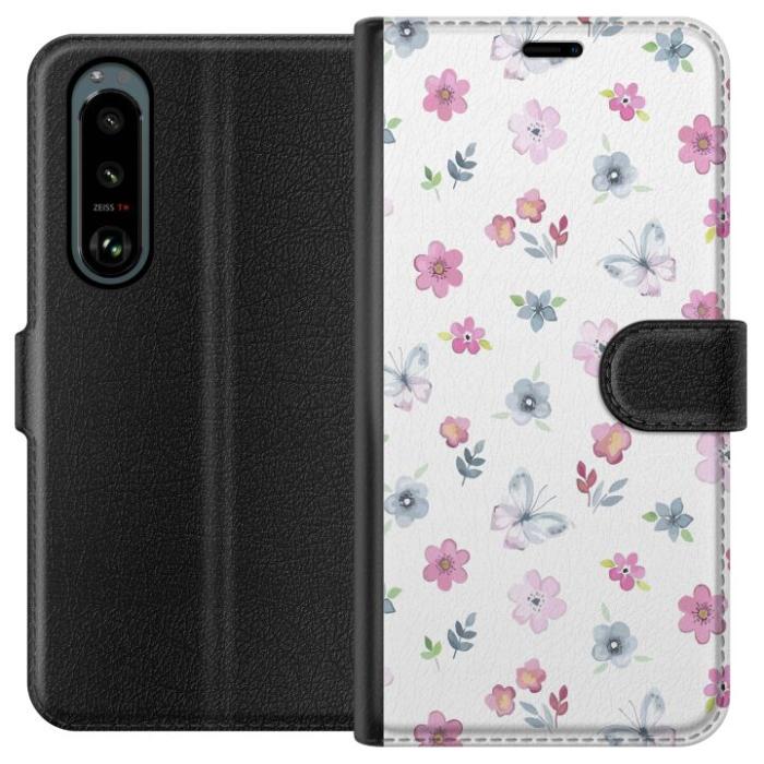 Plånboksfodral till Sony Xperia 5 III med Blommor och fjärillar
