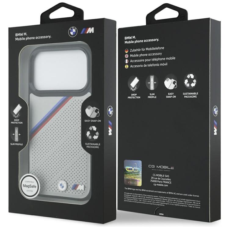 BMW iPhone 17 Pro Mobilskal MagSafe M Tricolor Metal Logo - Grå