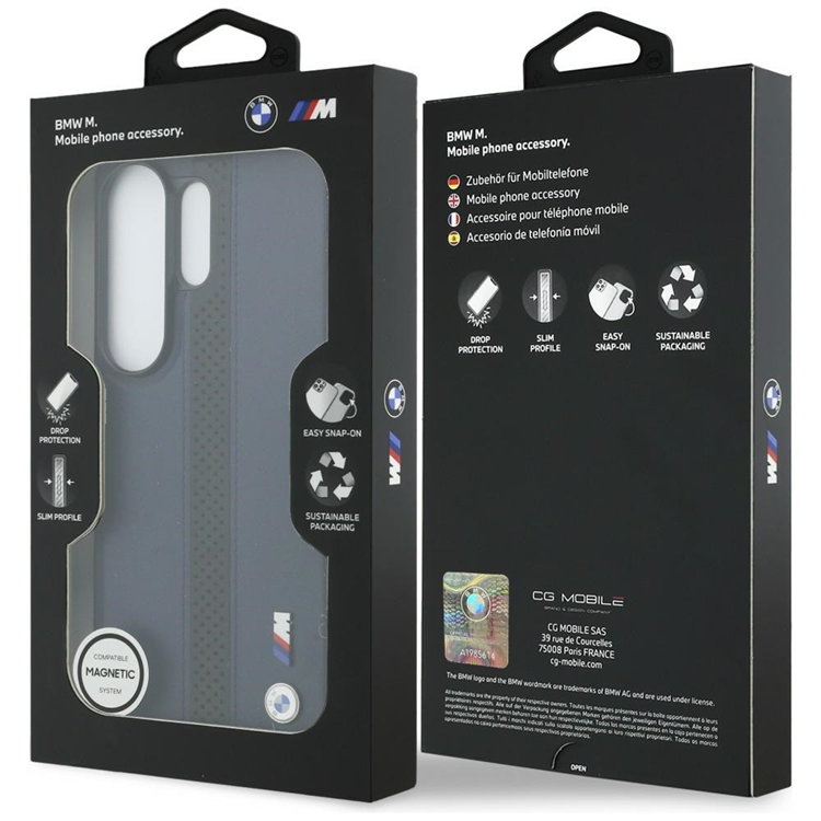 Känn racingpulsen varje gång du plockar upp mobilen. BMW M Perforated Stripe Logo mobilskal kombinerar lyxig design med motorsportens själ – perfekt för dig som vill att ditt tillbehör ska säga lika mycket om stil som om funktion. Det här skalet är skapat för att väcka uppmärksamhet: med perforerat svart eco-läder, ikoniska metallogotyper och en slimmad form som passar som handen i en racinghandske. Det är inte bara ett mobilskal – det är en förlängning av din passion för prestanda, kvalitet och design. Med inbyggt MagSafe-stöd får du dessutom smidig laddning utan att kompromissa med skyddet.