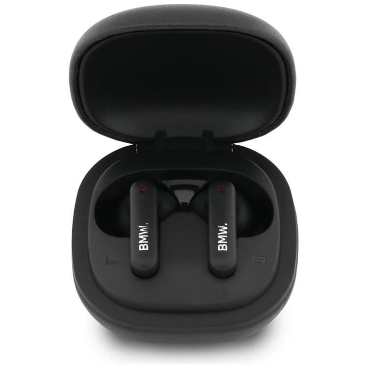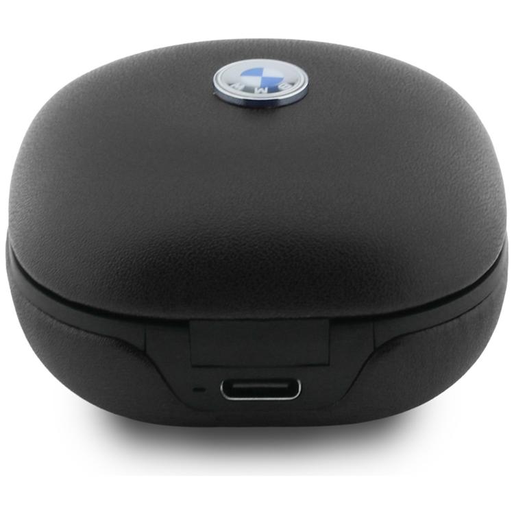 BMW TWS In-Ear Hörlurar Bluetooth ENC Leather Metal Logo - Svart