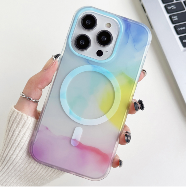 BOOM iPhone 14 Pro Max Mobilskal Magsafe Vattenfärg - Rainbow