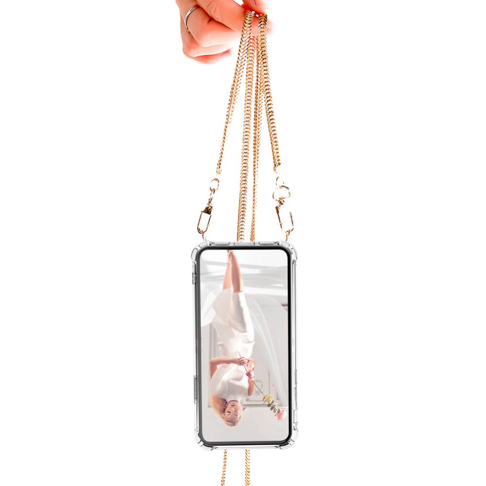 Ett praktiskt och enkelt sätt att bära med sig mobilen vart du än går. Och dessutom ser det så snyggt ut också. Du kan bära med dig mobilen i ett genomskinligt diskret skal tillsammans med en vacker metall kedja. Den fästs i mobilskalet med karbinhakar.