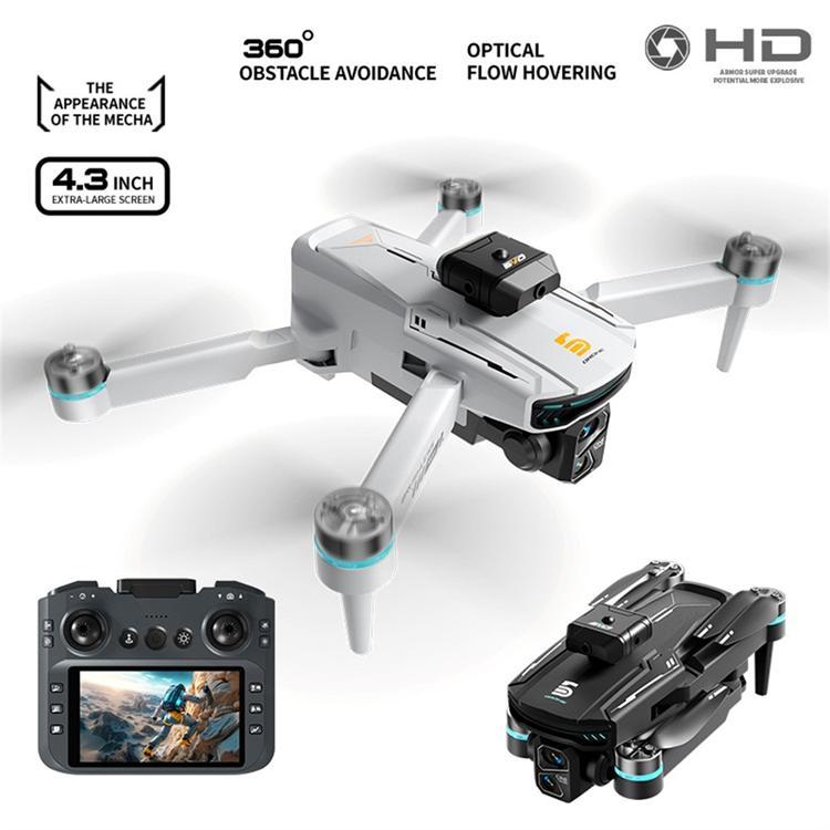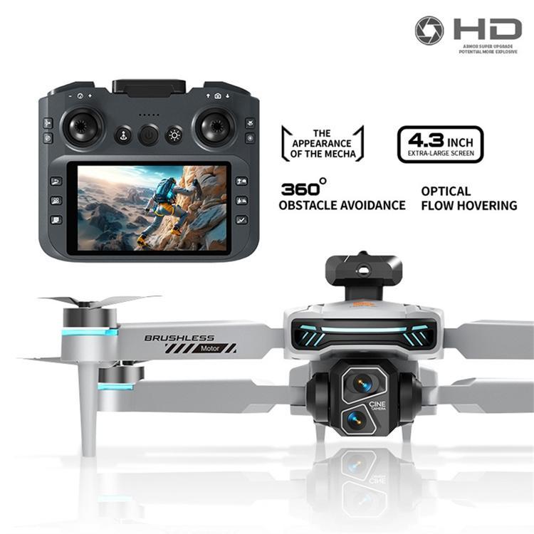 Dubbelkamera Smart Hinderundvikande Borstlös Drönare med 4.3-tums Skärm Fjärrkontroll, med 2 Batterier - Svart
