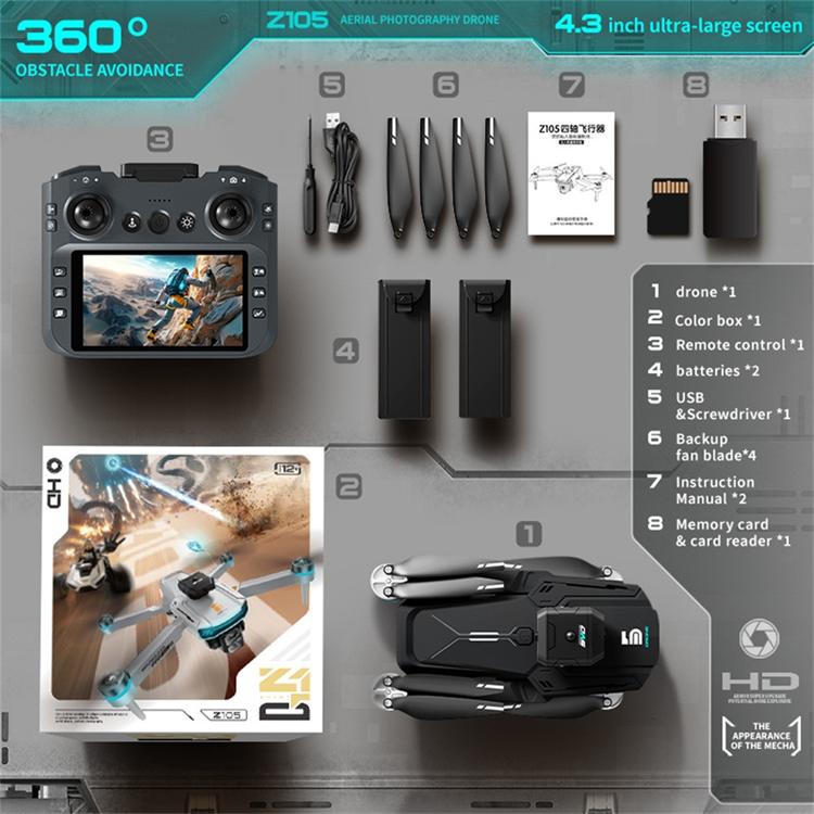 Upptäck en ny nivå av flygprecision med Z105 Smart Drone, skapad för att ge dig professionell prestanda i ett kompakt och lätt format. Den inbyggda 4.3-tums skärmen på fjärrkontrollen låter dig se allt i realtid utan att behöva koppla in en mobil – perfekt för spontana flygningar och smidiga upplevelser. Med sin 4K HD frontkamera och justerbara bottenkamera kan du enkelt skapa imponerande flygbilder från flera vinklar, medan den elektroniska bildstabiliseringen (EIS) håller varje bild klar och stabil.