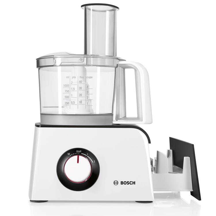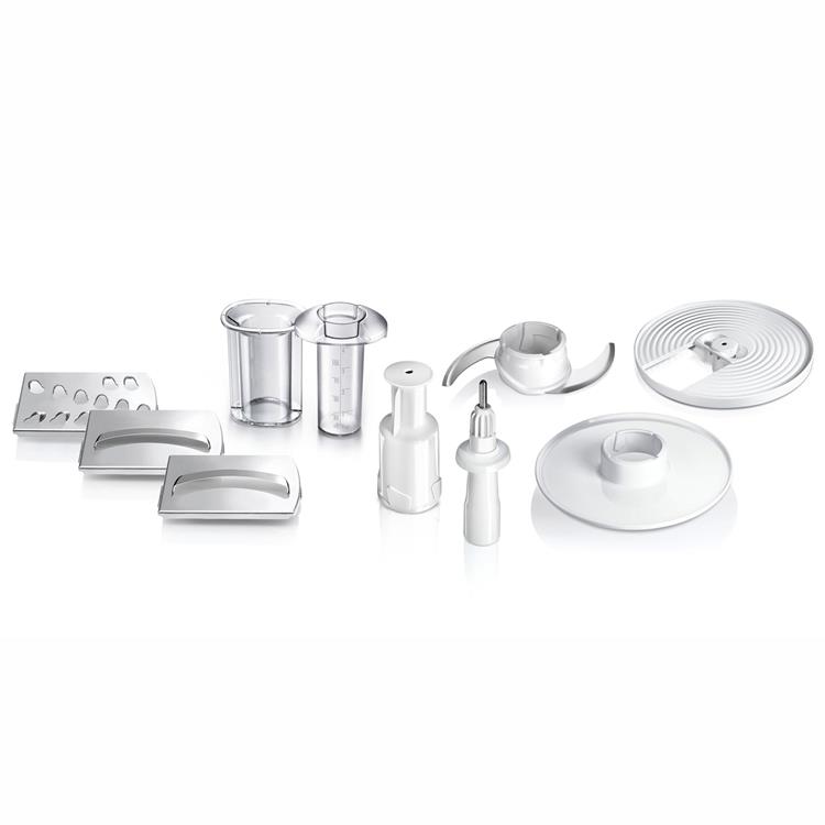 Spar plats tack vare praktisk tillbehörsförvaring. Den praktiska köksmaskiner med många funktioner såsom rivning, skivning, knådning, vispning m.m. Kompakt med integrerad tillbehörslåda för att spara plats.