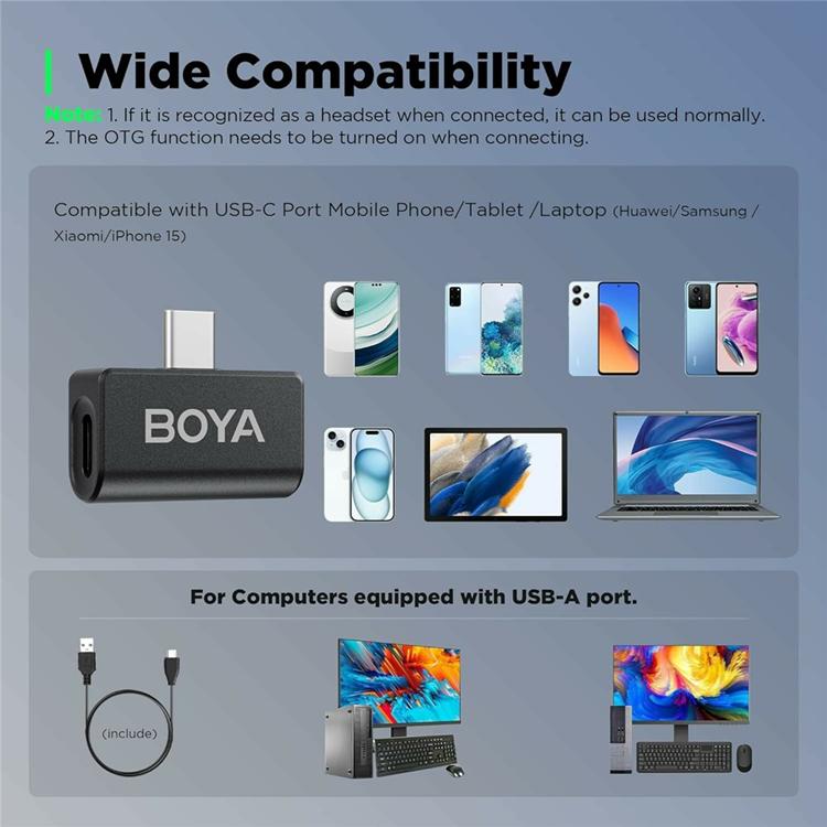 Få professionellt ljud var du än befinner dig med BOYA Omic-U, en kompakt och kraftfull trådlös lavaliermikrofon med två sändare och en USB-C mottagare. Perfekt för vloggare, journalister, föreläsare och kreatörer som vill leverera klar och naturlig ljudkvalitet utan krångliga kablar. Den rundupptagande mikrofonen fångar rösten med precision, medan 48kHz HD-ljud och brusreducering säkerställer kristallklara inspelningar även i bullriga miljöer.
