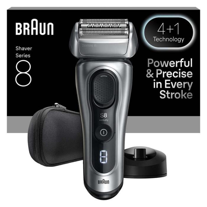 Braun Series 8 är rakapparaten för dig som kräver både styrka och finess. Med sin avancerade teknologi levererar den en nära och behaglig rakning, även på de mest svåråtkomliga områdena. Oavsett om du rakar dig dagligen eller hanterar ett kraftigare skägg, anpassar Series 8 sig sömlöst till dina behov – för ett jämnt, professionellt resultat hemma. Det eleganta silverutförandet och den robusta designen gör den till en pålitlig del av din vardagsrutin.