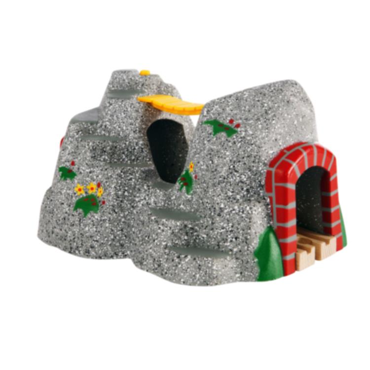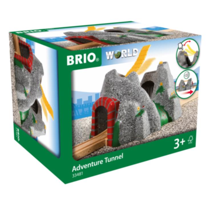 Dekorerad tunnel med ljudsystem som aktiveras av magneter. BRIO äventyrstunnel passar till alla BRIOs tågbanor.