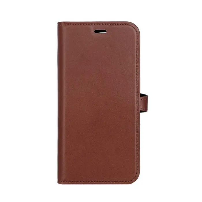 Mobilfodral i läder av hög kvalitet med tre kortplatser och sedelficka. Det skyddande magnetskalet kan användas separat och stöder trådlös laddning med MagSafe.