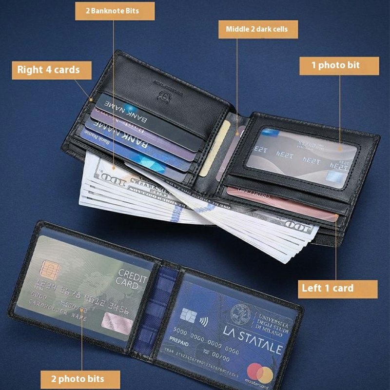 - Generös Förvaring: Innehåller 8 kortfack, 1 körkortsfack, 2 stora sedelfack och 2 fotofack.