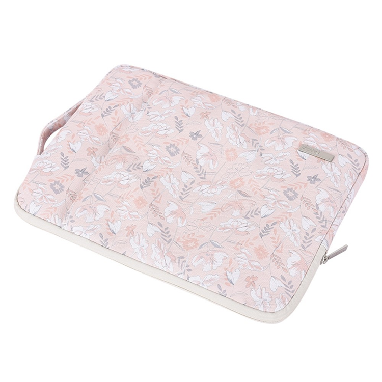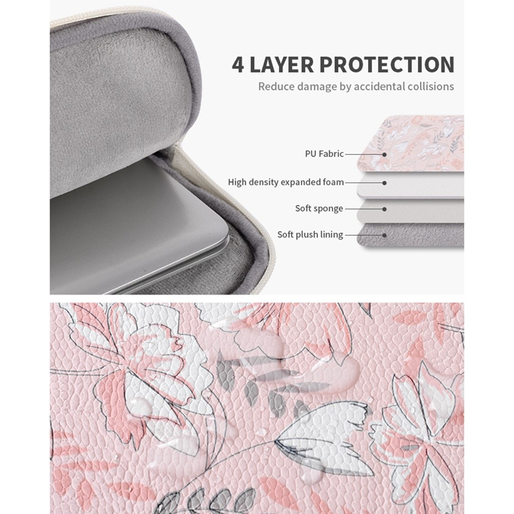 CANVASARTISAN Datorfodral 14'' med Handtagsrem/Outer Zippered Pouch Bärbara Flower Printed PU-läder G4-89 - Rosa