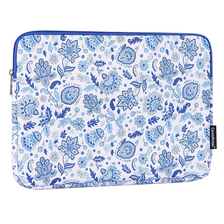 Den tunna, stilrena designen pryds av ett vackert blommönster som ger en sofistikerad och modern look. Huvudfacket har plats för en 11-tums laptop eller surfplatta, medan den extra medföljande väskan är perfekt för tillbehör som pennor, kablar, mus, hörlurar eller mobil. Enkel att bära i handen eller packa ner i en ryggsäck – en smidig följeslagare för jobb, skola och resor.