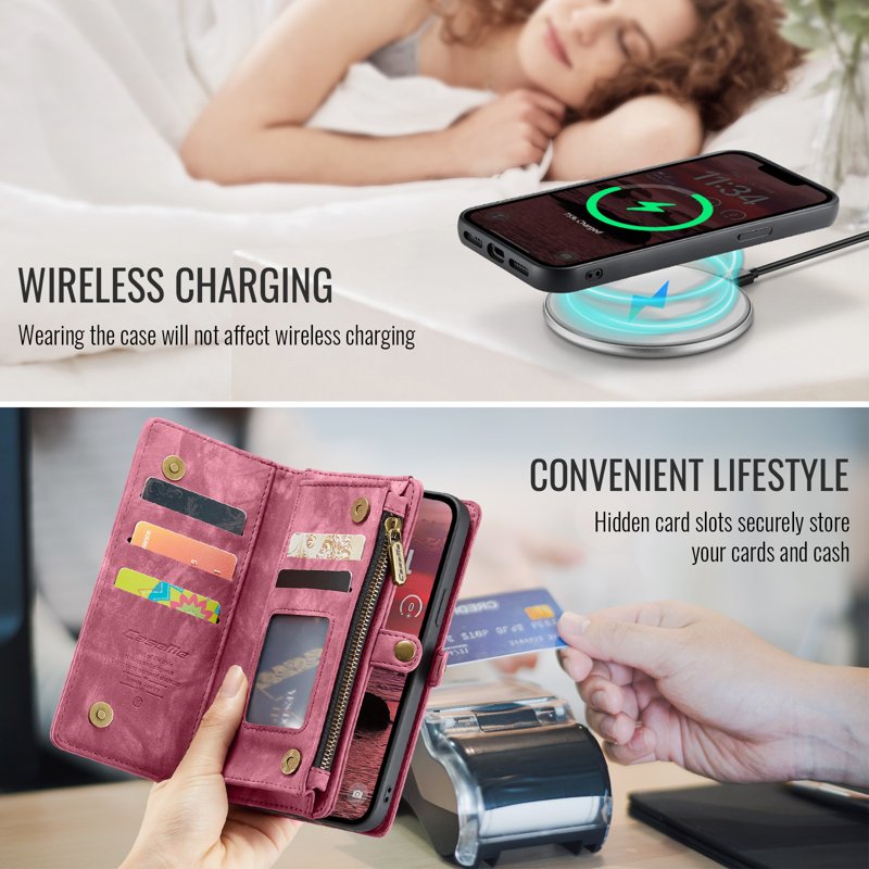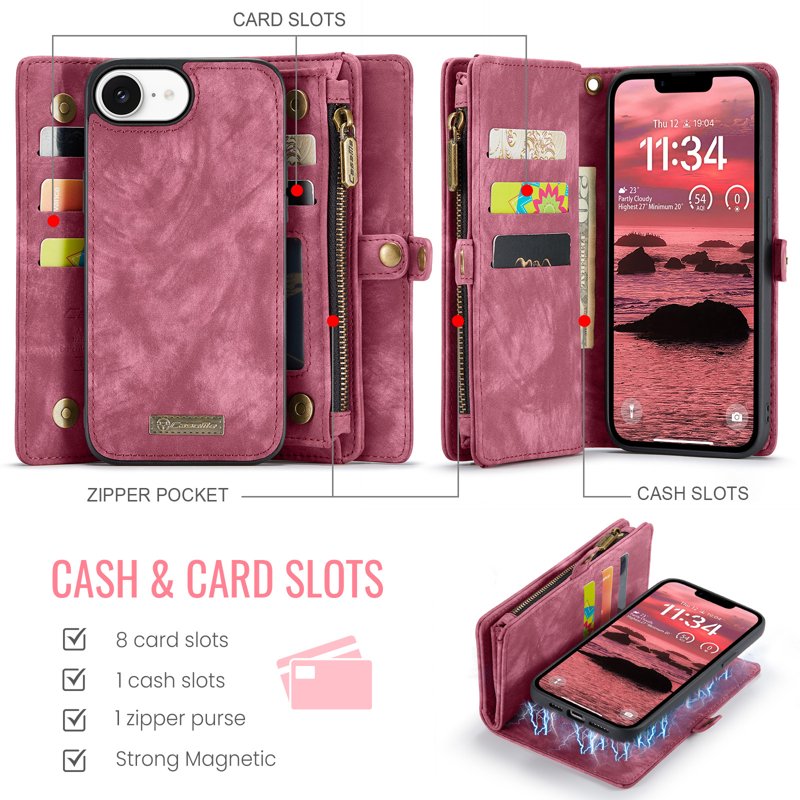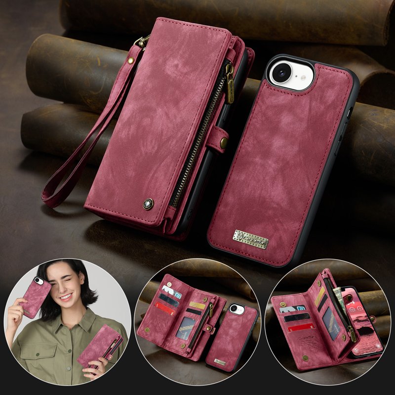 Handla denna produkt CASEME 008 iPhone 16e Fodral i Läder med Plånbok - Röd