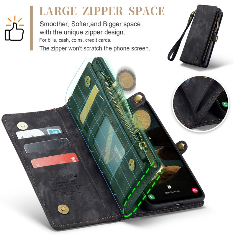 • Praktiska fack - Innehåller 8 kortfack, 1 kontantfack och 1 dragkedjefack för extra förvaring.