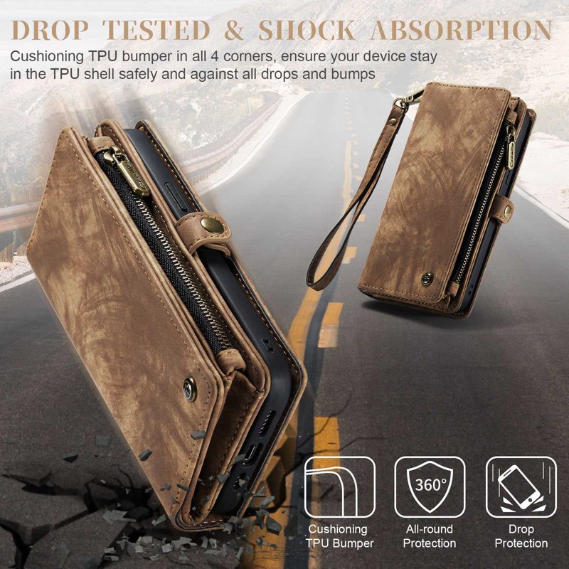 Denna mobilfodral kombinerar stil och funktionalitet med sin smarta design. Med flera fack kan du enkelt organisera dina kreditkort, busskort och ID-kort. Det praktiska myntfacket med dragkedja håller dina pengar och hörlurar säkra. Tillverkat av högkvalitativt PU-läder och TPU-material för långvarig hållbarhet.