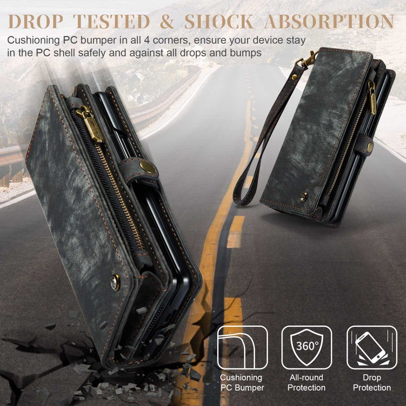 Denna premium PU-läderfodral erbjuder både stil och funktionalitet. Med en retro textur och en robust TPU-inre konstruktion skyddar den din telefon effektivt. Fodralet har flera kortfack och en praktisk dragkedjeficka, vilket gör det enkelt att ha med sig allt du behöver.