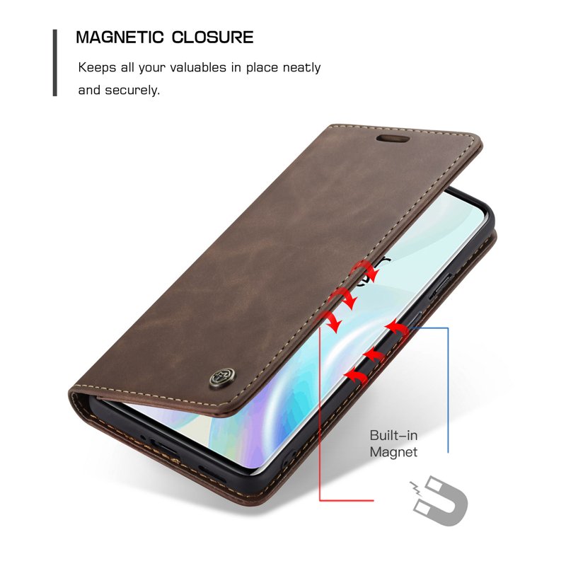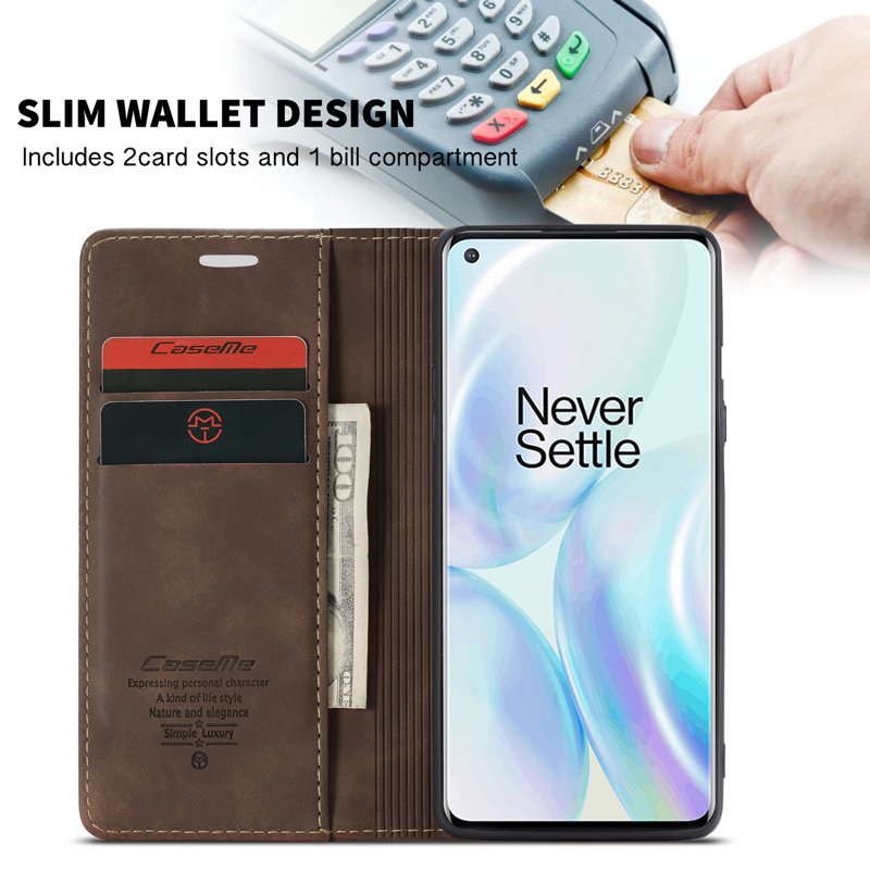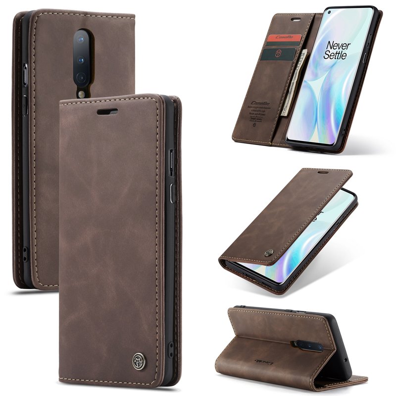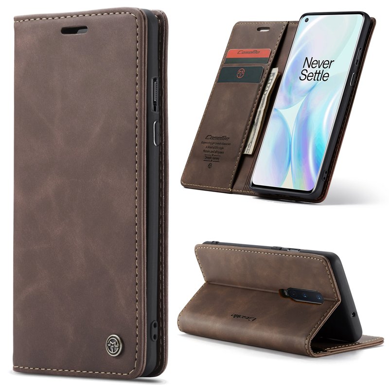CASEME 013 Series Auto-absorbed Läderplånbok för OnePlus 8 - Kaffe