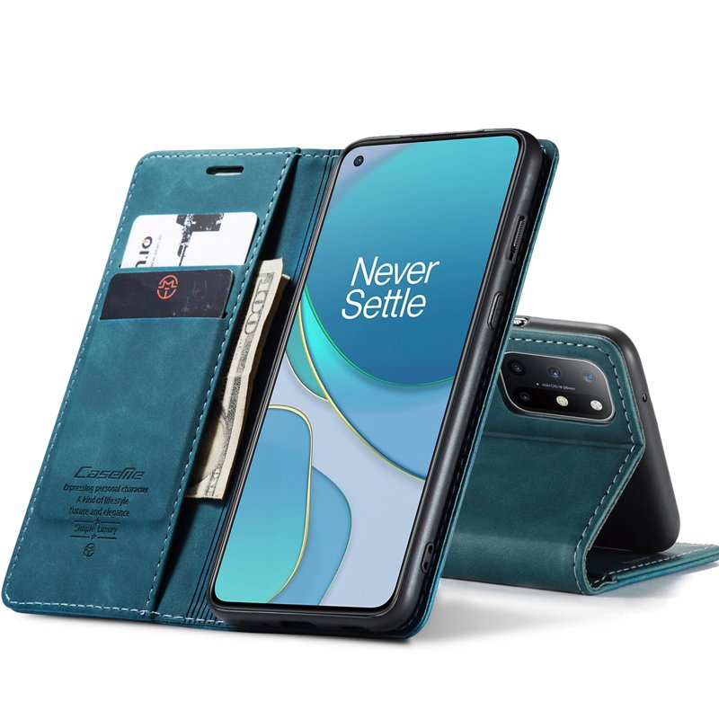 CASEME 013 Series Auto-absorberande Läderplånboksfodral för OnePlus 8T - Blå