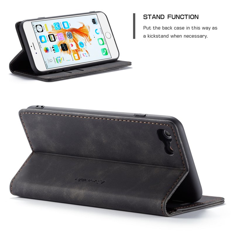 CASEME 013 Series Auto-absorberande PU Läder Plånboksfodral för iPhone 7 Plus / 8 Plus 5.5 tum - Svart