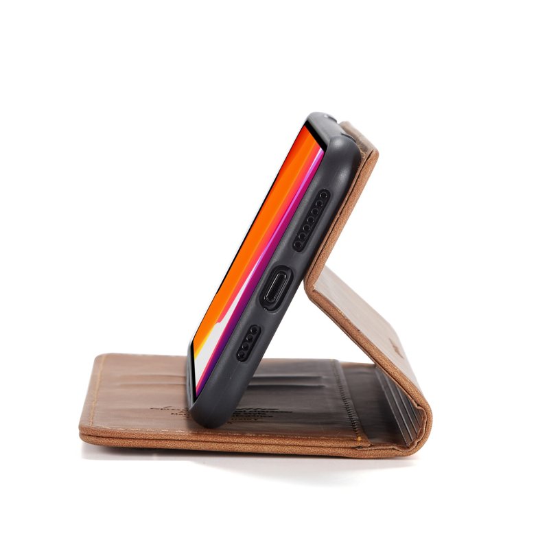 CASEME 013 Series Auto-absorberande Flip Läderplånboksfodral för iPhone 11 Pro Max 6,5 tum (2019) - Brun