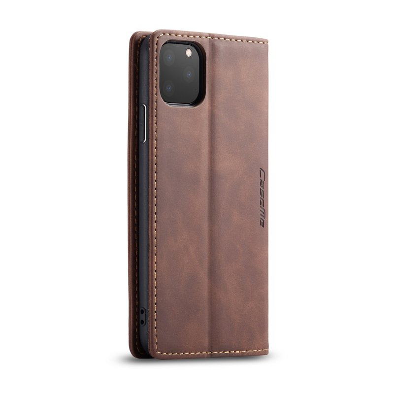 CASEME 013 Series Auto-absorberande Flip Läderplånboksfodral för iPhone 11 Pro Max 6.5 tum (2019) - Kaffe