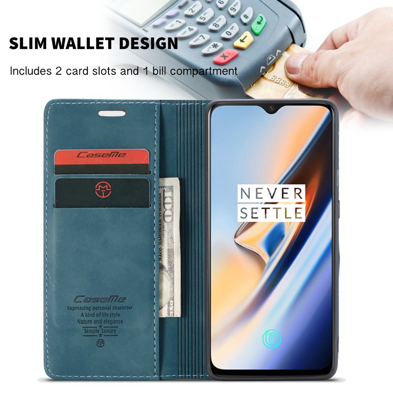 CASEME 013 Series Auto-absorberande Läder Flip Plånboksfodral för OnePlus 7 - Blå