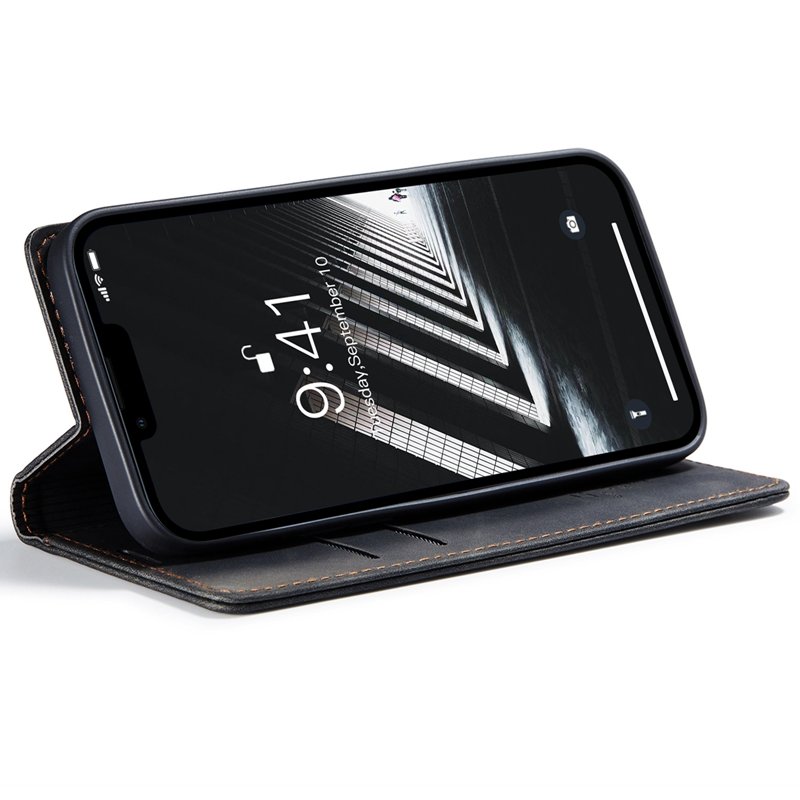 Detta fodral kombinerar stil och funktionalitet. Tillverkat av noggrant utvalt PU-läder och TPU, erbjuder det en retro känsla och skyddar din telefon effektivt. Med smarta designlösningar gör det din vardag enklare och mer bekväm.