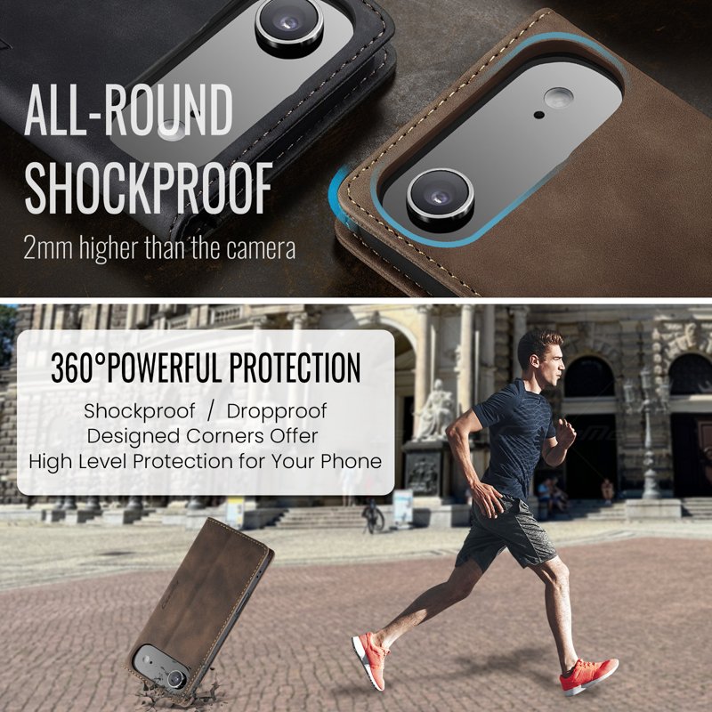 Detta fodral kombinerar stil och funktionalitet. Tillverkat av noggrant utvalt PU-läder och TPU, erbjuder det en retro känsla och skyddar din telefon effektivt. Med smarta fack för kort och kontanter blir din vardag enklare.