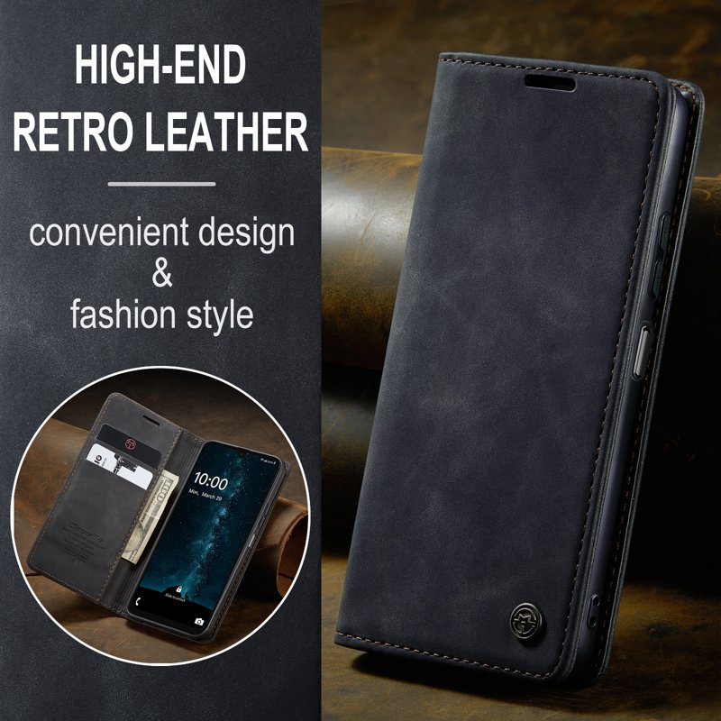 Detta fodral kombinerar stil och funktionalitet. Tillverkat av noggrant utvalt PU-läder och TPU, erbjuder det ett retro utseende och skyddar din telefon effektivt. Med smarta designlösningar gör det din vardag enklare och mer bekväm.