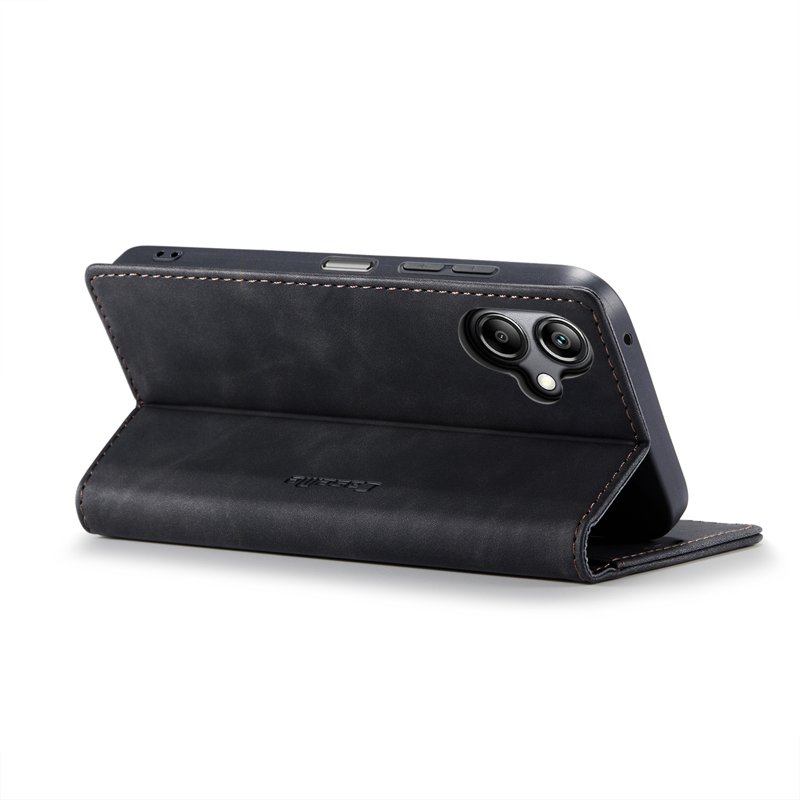Detta fodral kombinerar stil och funktionalitet. Tillverkat av noggrant utvalda PU-läder och TPU, erbjuder det en retro känsla och skyddar din telefon effektivt. Med smarta fack för kort och kontanter gör det din vardag enklare.