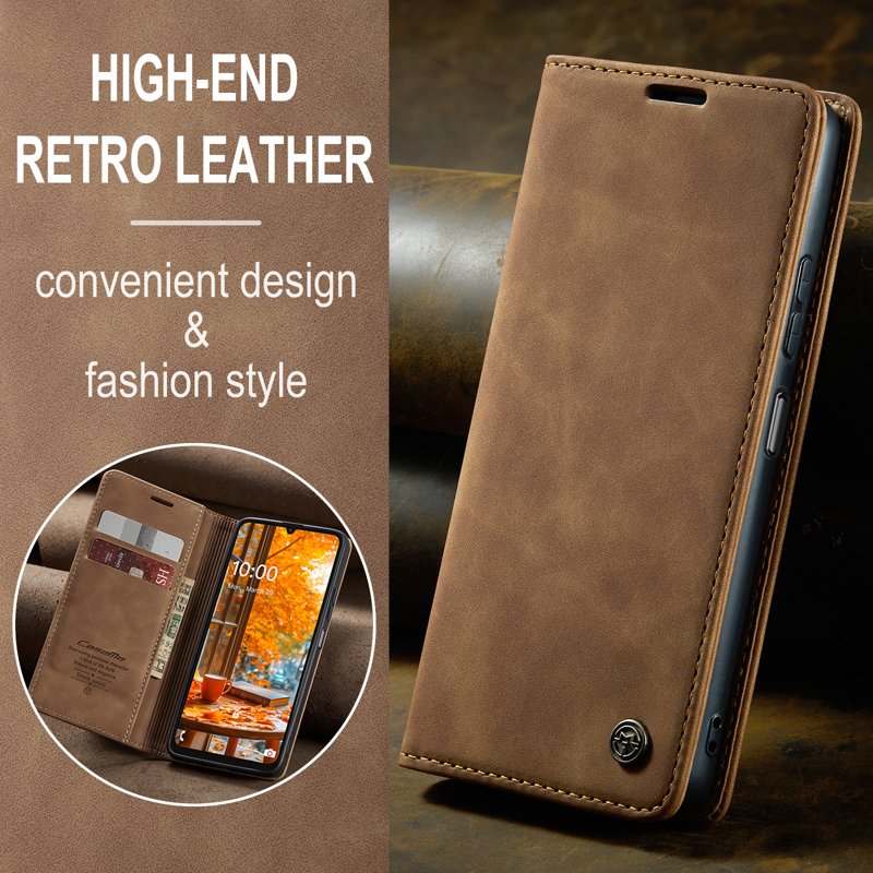 Detta fodral kombinerar stil och funktionalitet. Tillverkat av noggrant utvalt PU-läder och TPU, erbjuder det en retro känsla och skyddar din telefon effektivt. Med smarta designlösningar gör det din vardag enklare och mer bekväm.