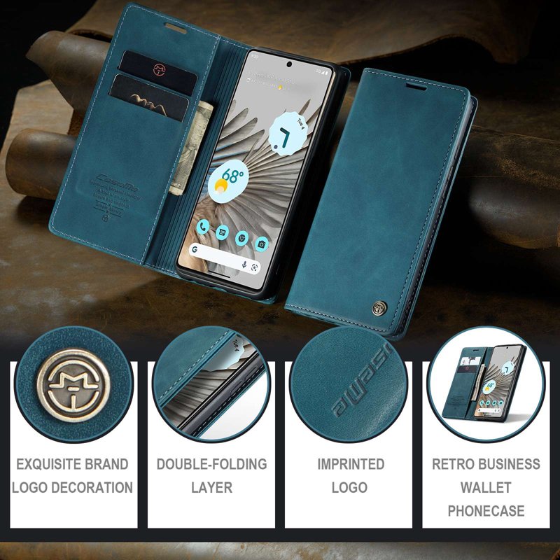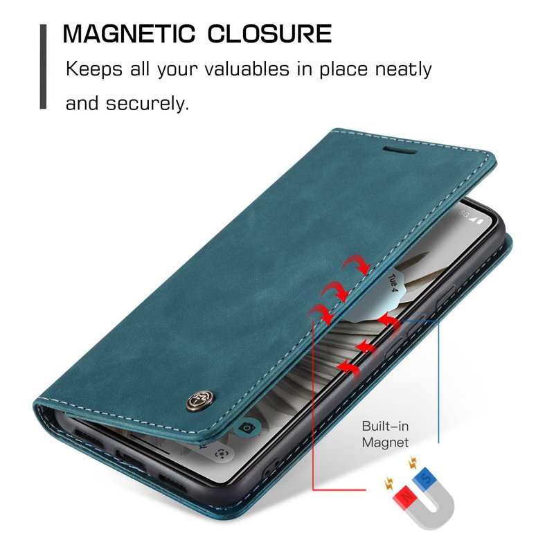 Detta fodral kombinerar stil och funktionalitet. Tillverkat av noggrant utvalt PU-läder och TPU, erbjuder det ett retro utseende och skyddar din telefon effektivt. Med smarta fack för kort och kontanter gör det din vardag enklare.